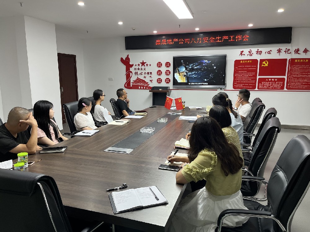 2022年 8 月 24 日,瀘州鑫晟房地產(chǎn)開(kāi)發(fā)有限公司組織召開(kāi)八月安全生產(chǎn)工作會(huì),會(huì)議由董事長(zhǎng)任東財(cái)主持,公司全體員工參加。