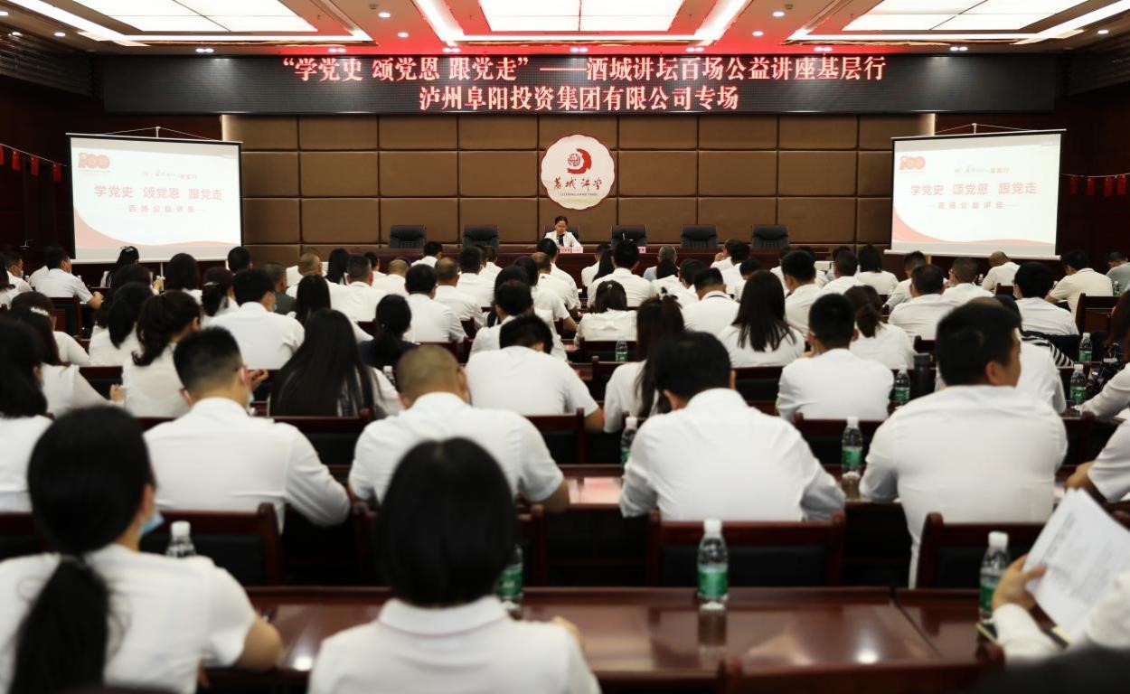 5月19日下午,“學(xué)黨史頌黨恩跟黨走”——酒城講壇百場公益講座基層行瀘州阜陽投資集團(tuán)有限公司專場在政...