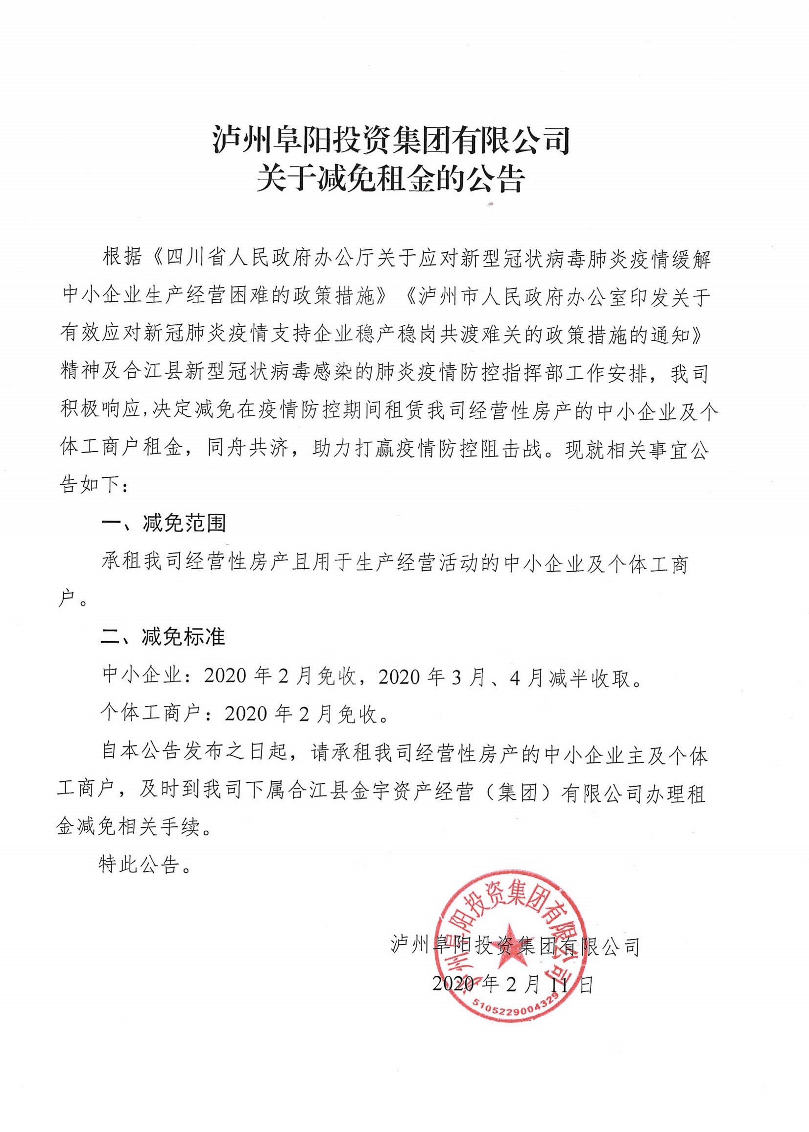 關(guān)于減免租金的公告