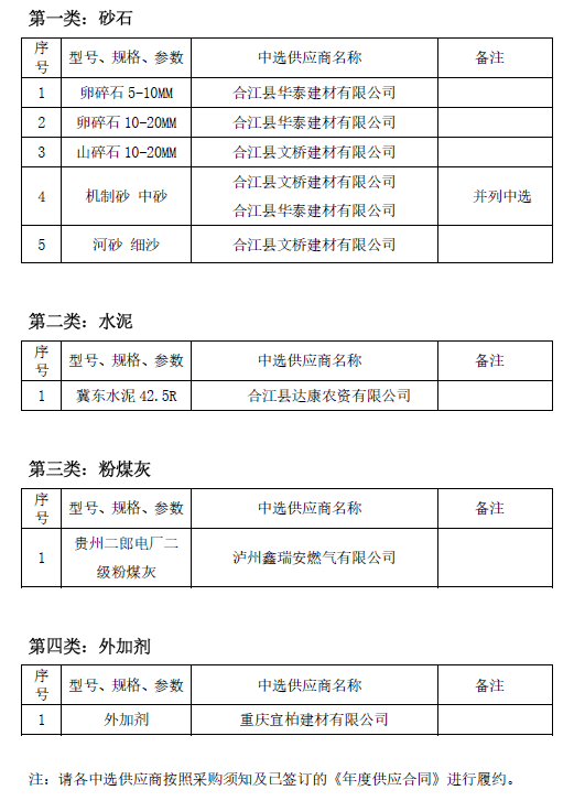 合江縣國瑞建材有限公司商品混凝土攪拌站生產(chǎn)原材料采購中選公告