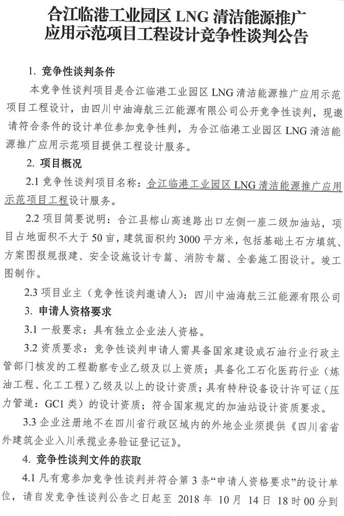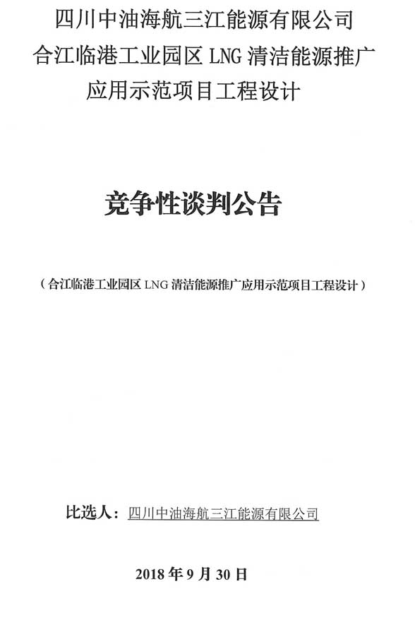 競(jìng)爭(zhēng)性談判公告:合江臨港工業(yè)園區(qū)LNG清潔能源推廣應(yīng)用示范項(xiàng)目工程設(shè)計(jì)競(jìng)爭(zhēng)性談判公告