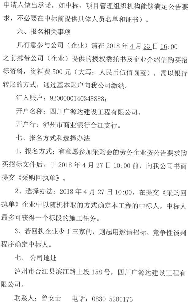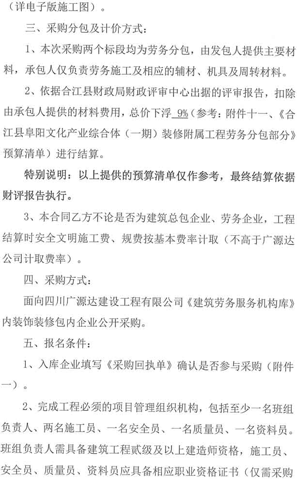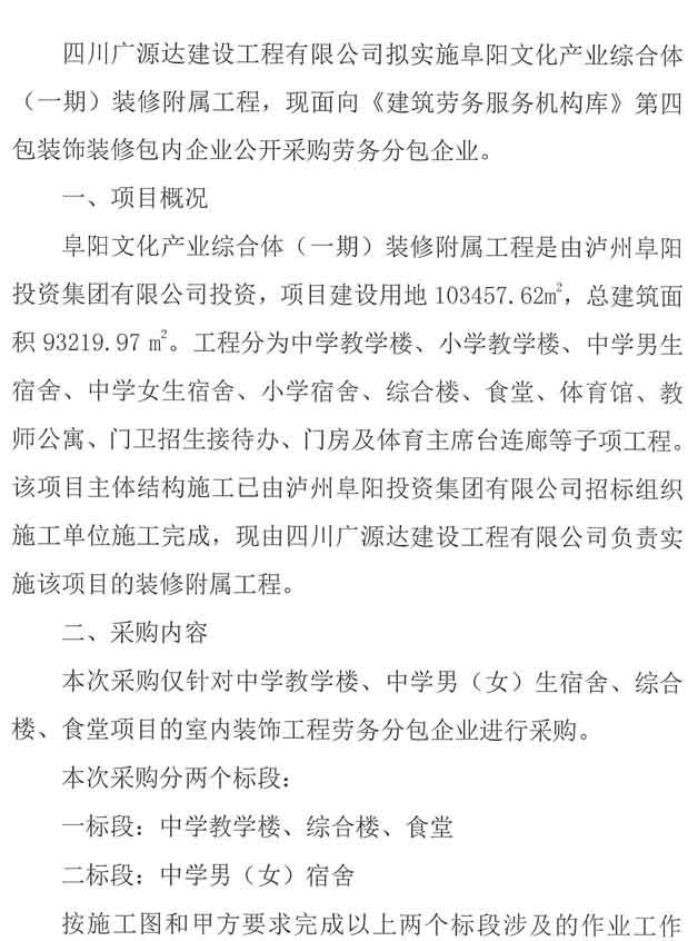 采購公告:四川廣源達(dá)建設(shè)工程有限公司阜陽文化產(chǎn)業(yè)綜合體(一期)裝修附屬工程勞務(wù)分包企業(yè)采購公告