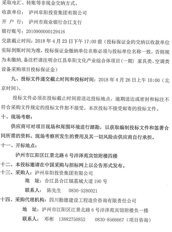 投標邀請:合江縣阜陽文化產(chǎn)業(yè)綜合體(一期)項目家具類、空調類設備采購