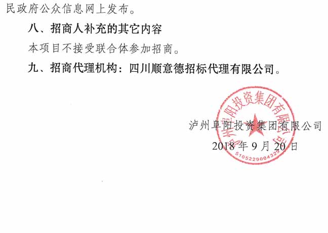 招商公告:瀘州阜陽投資集團有限公司耕地占補平衡項目招商公告