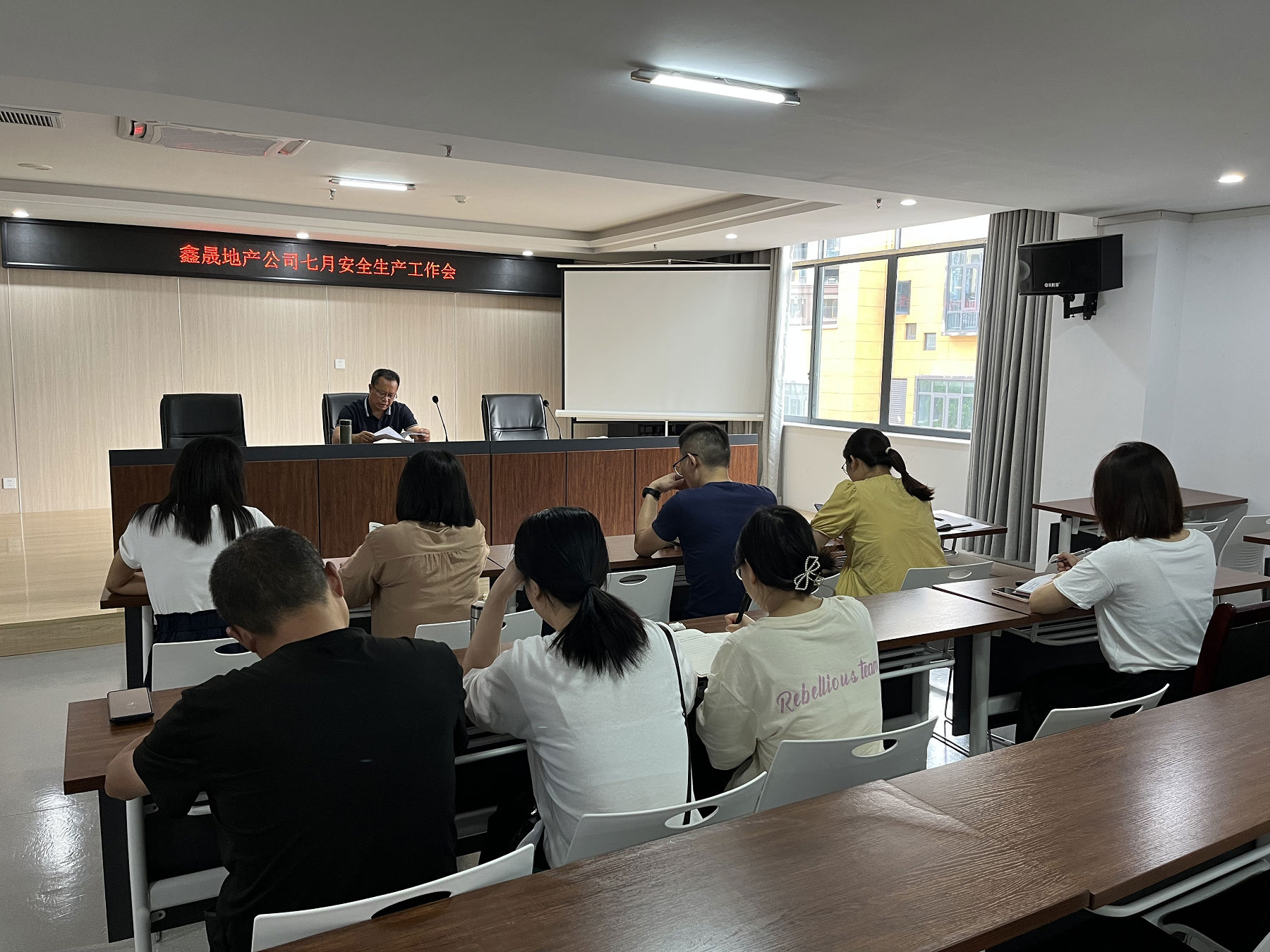 2022 年 8 月 4 日, 瀘州鑫晟房地產(chǎn)開發(fā)有限公司組織召開七月安全生產(chǎn)工作會,會議由董事長任東財主持,公司全體員工參加。